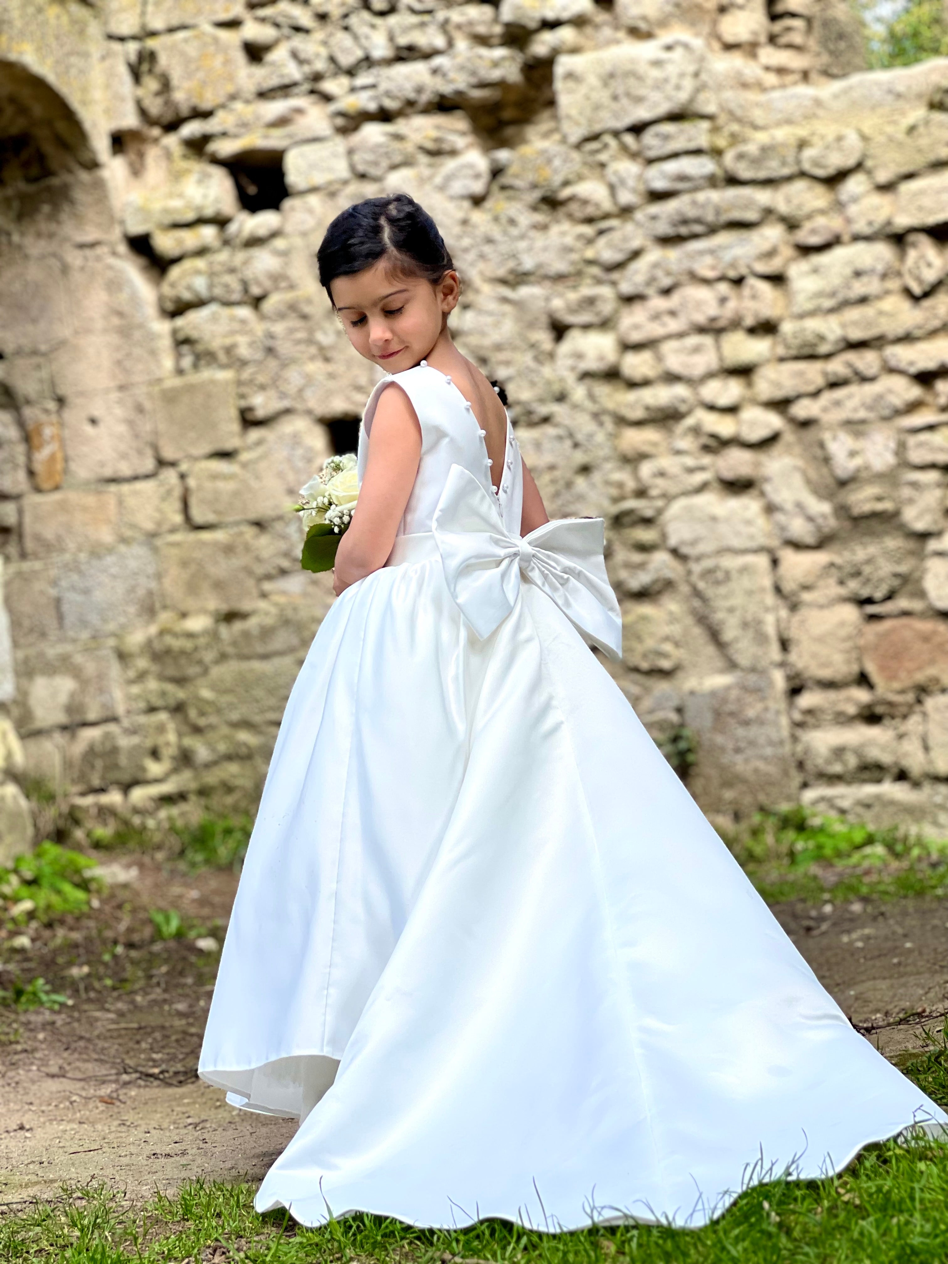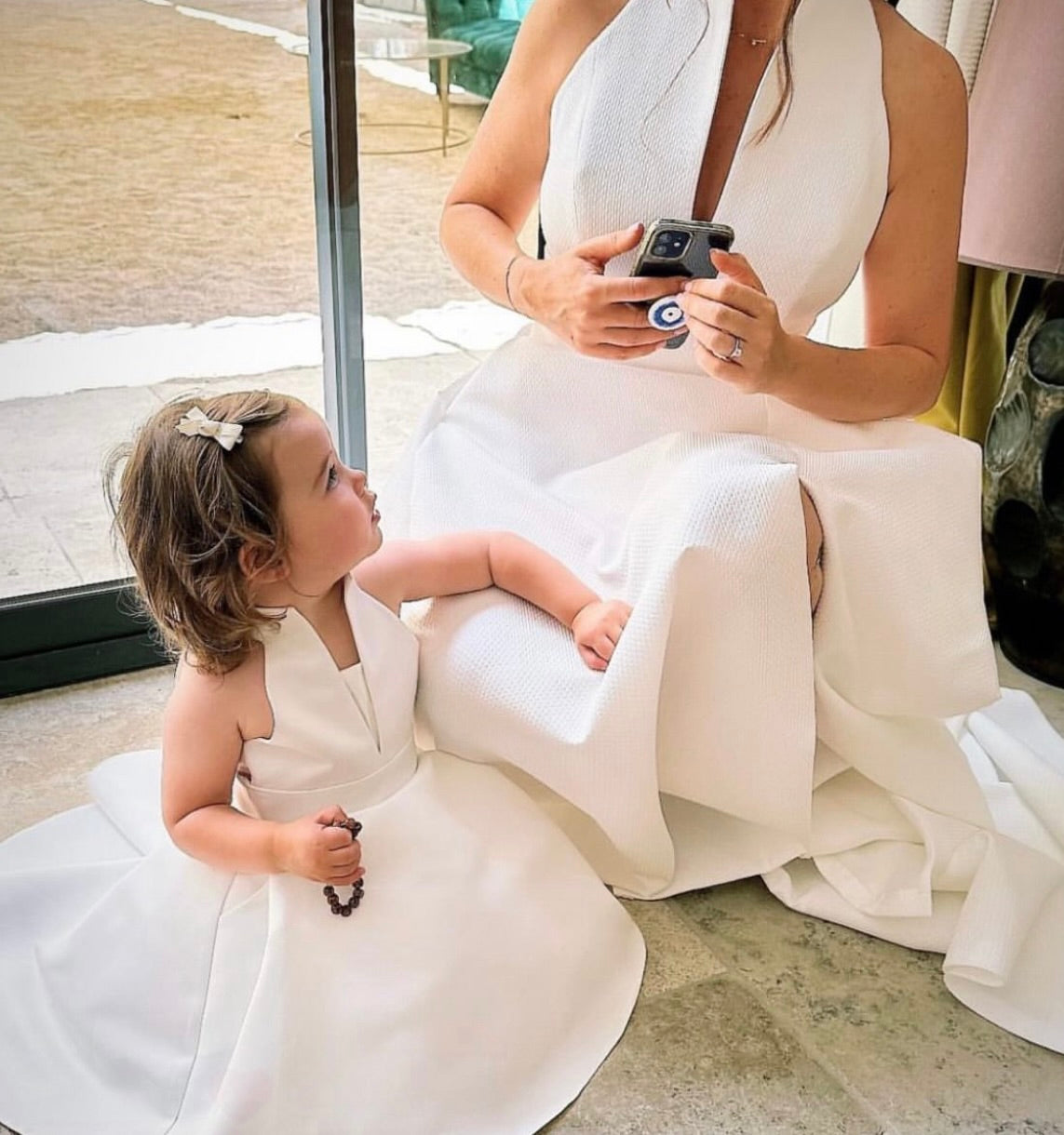 Vous rêvez d’un duo assorti mère-fille, d’une couleur spécifique, ou de petits détails comme des manches, une traîne, ou un nœud papillon ?