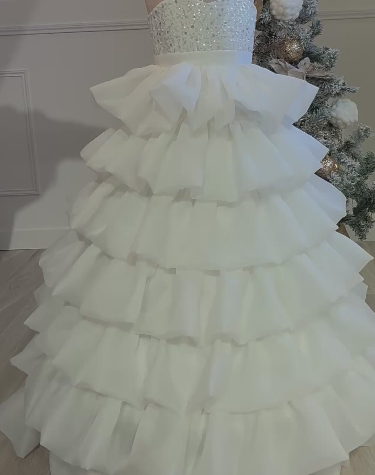 Un cerceau intégré dans la robe ajoute encore plus de volume, créant une silhouette majestueuse qui fera briller votre fille lors des grandes occasions. Cette robe est idéale pour les cérémonies, les mariages et les événements spéciaux.